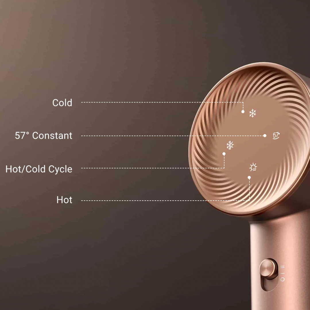 🗝️ Hot/Cold Mode: Alternating temperature for curling, fluffy hair and other styling scenes — 7s hot and 5s cold air to reduce heat buildup.