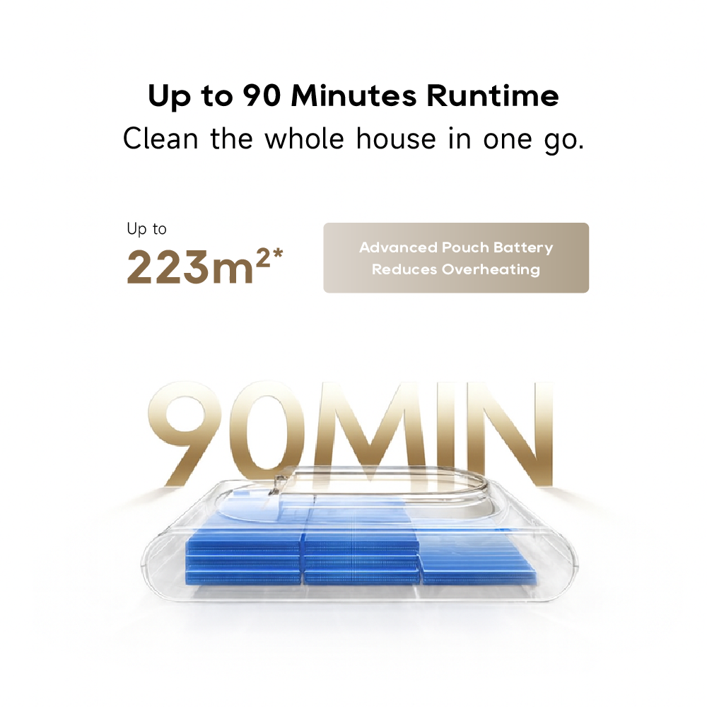 Able to Clean Up to 223m²* and comes with Advanced Pouch Battery.