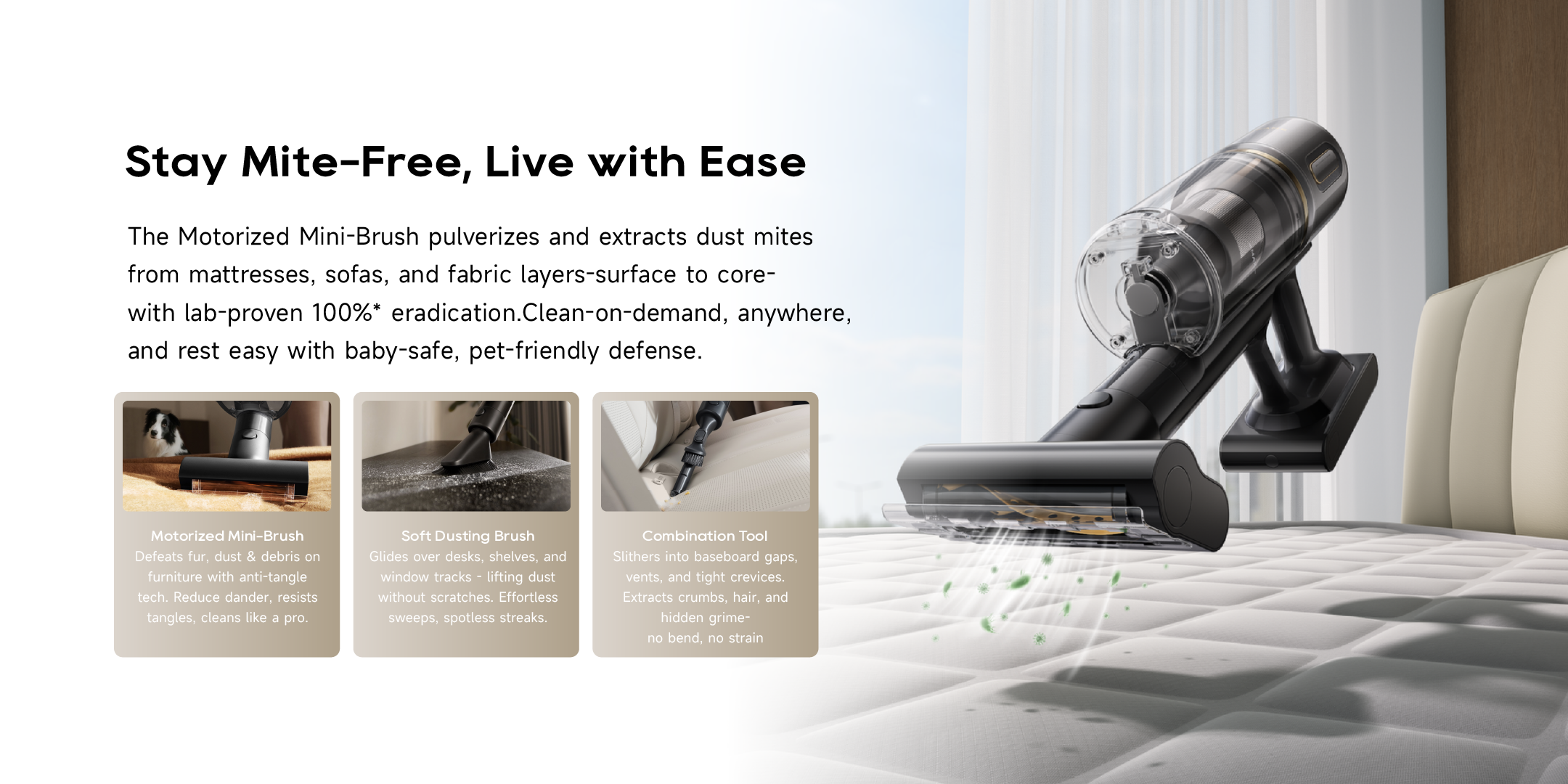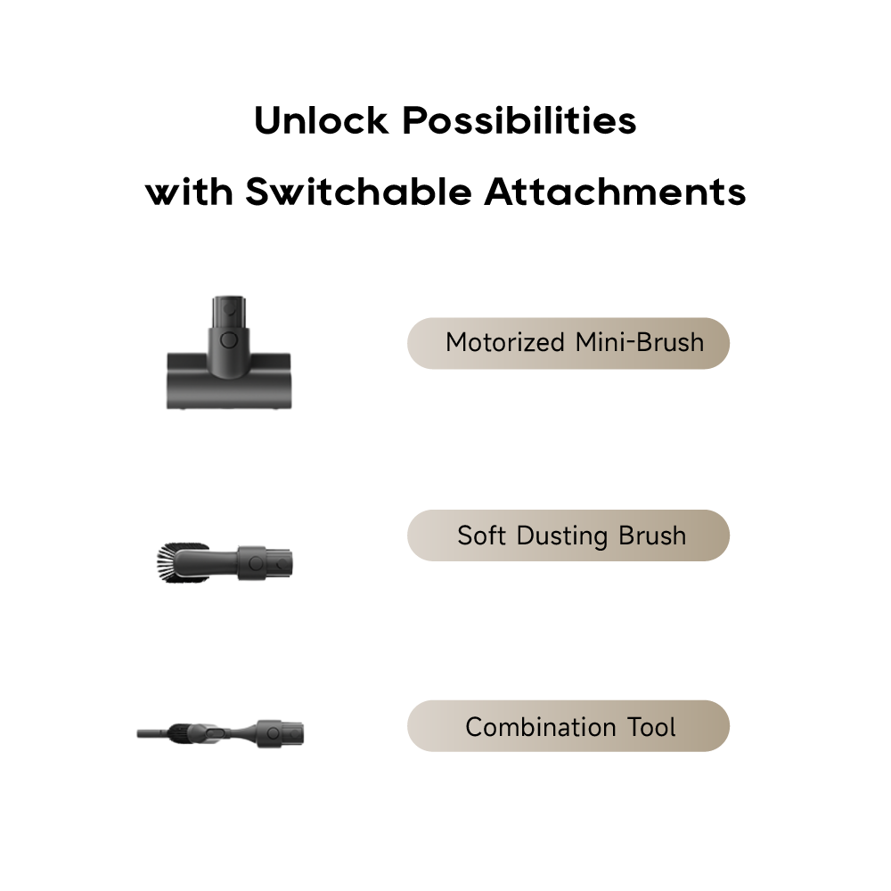 Swap tools and clean any surfaces like hard floors, carpets and furniture. Unlock different possibilities with switchable attachments.